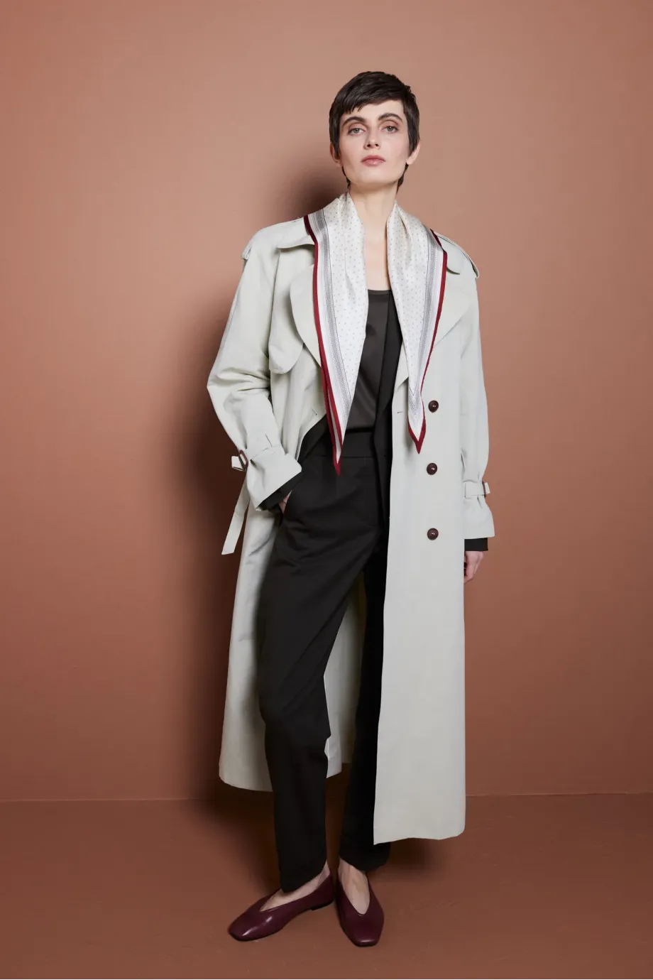 Długi trencz z paskiem