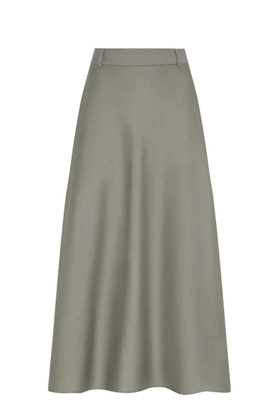Wełniana spódnica midi. Zapięcie z boku na suwak i guzik. Luźny fason. Kolor jasna zieleń