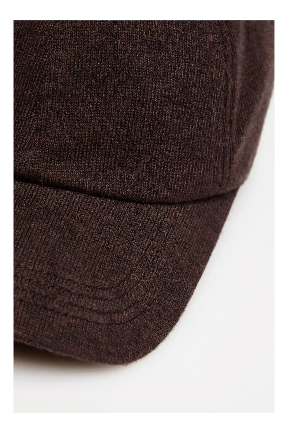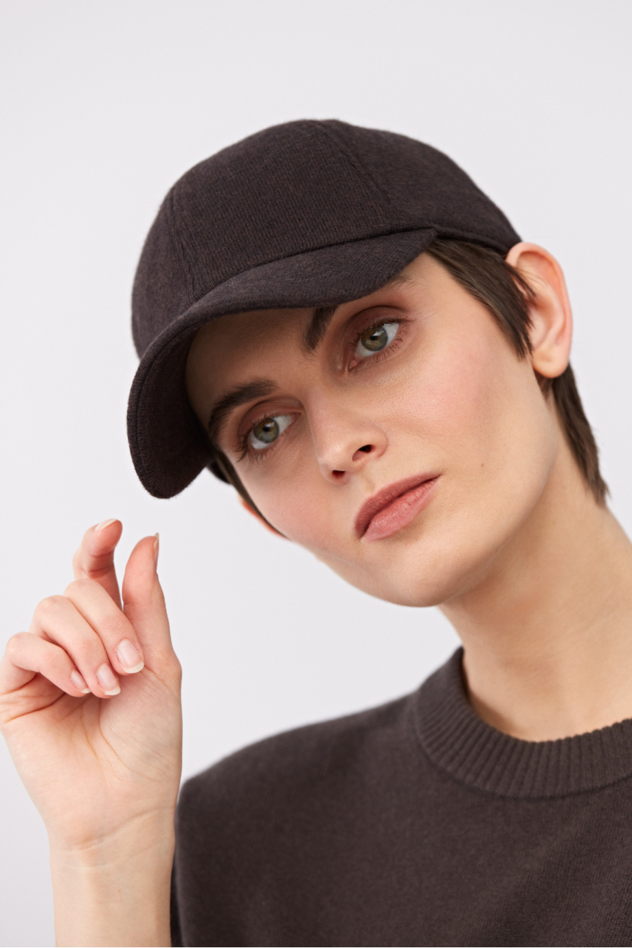 Czapka z daszkiem z domieszką kaszmiru. Z tyłu regulowane zapięcie. Kolor brązowy.