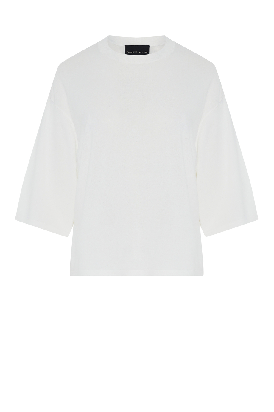 Biała bluzka z krótkim rękawem. Okrągły dekolt. Miękka dzianina, o drobnym splocie single jersey, wykonana na maszynie o uigleniu 16 GG. Prosta, luźna forma. Do uzupełnienia zestawy spodnie z tej samej dzianiny.