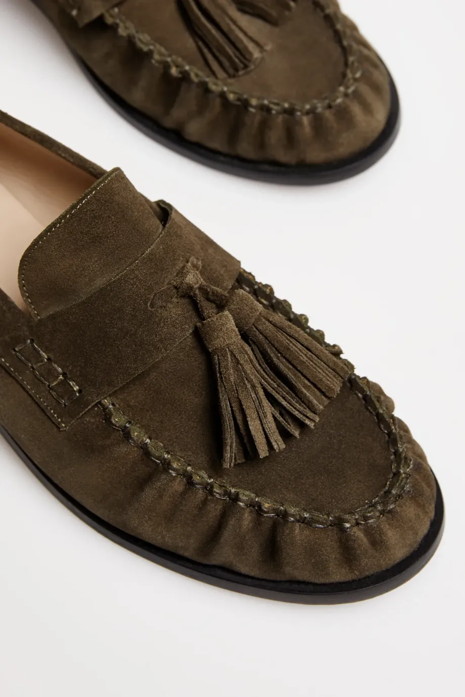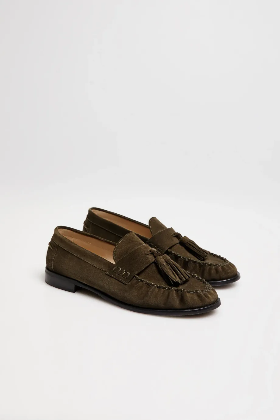 Zamszowe mokasyny z frędzlami. Wykonane z wysokiej jakości, naturalnej skóry cielęcej i bydlęcej. Kolor brązowy. Ręcznie uszyte w hiszpańskiej manufakturze.
