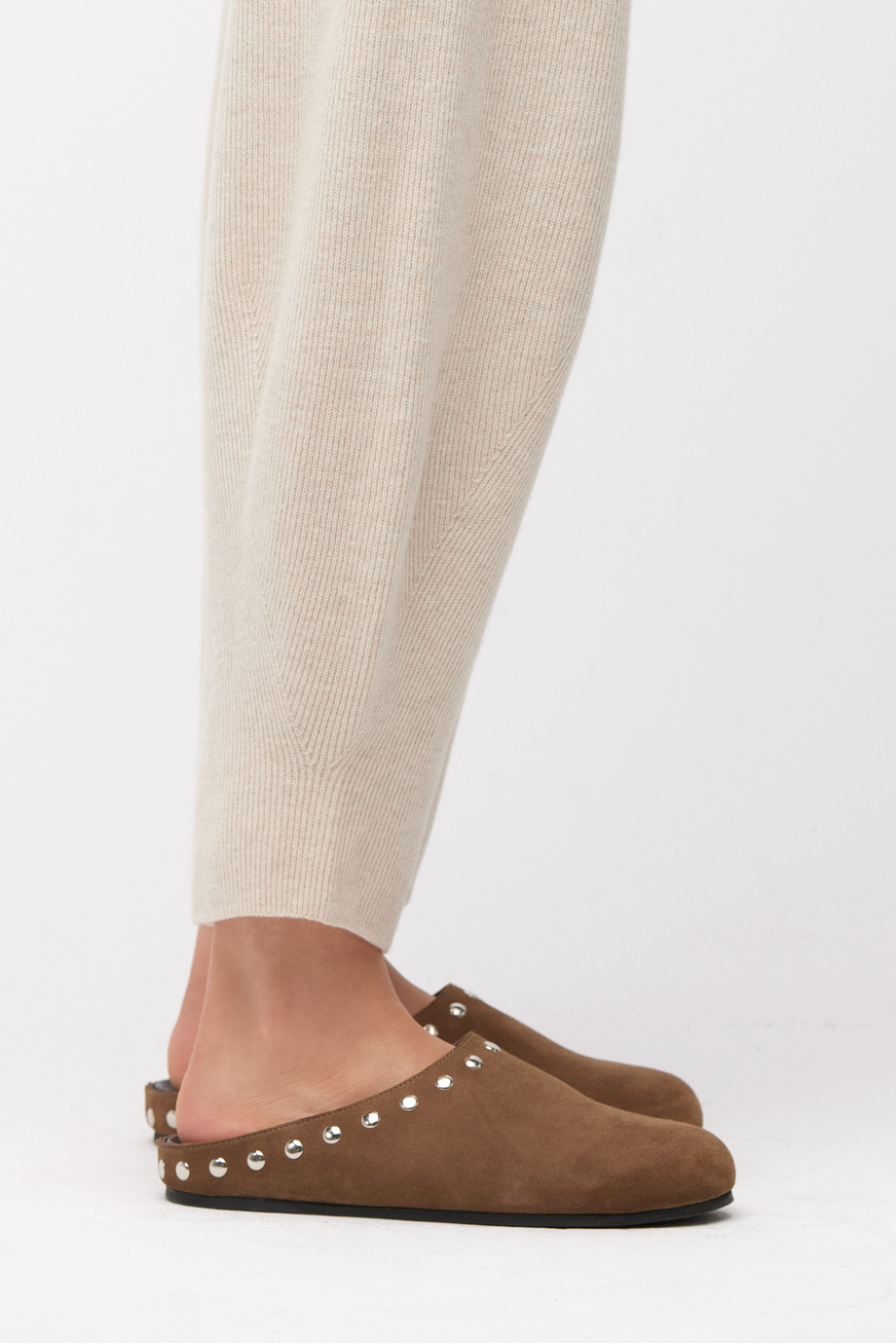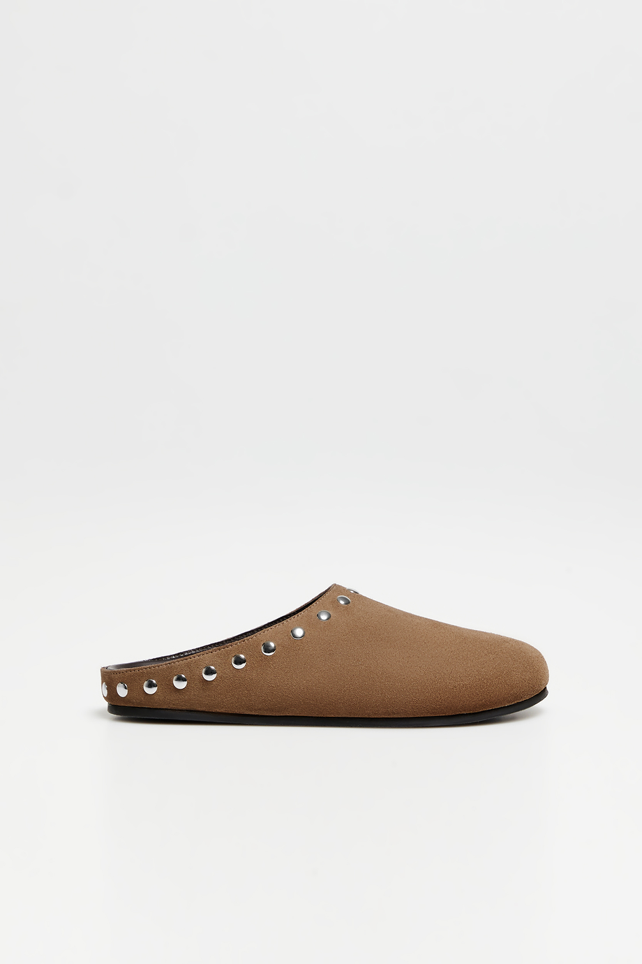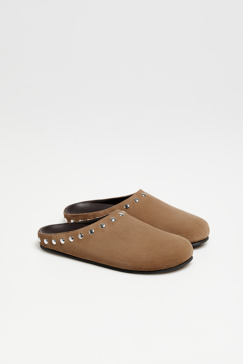 Brązowe, wsuwane klapki ze skóry zamszowej. Miękkie i wygodne. Ręcznie uszyte w portugalskiej manufakturze.