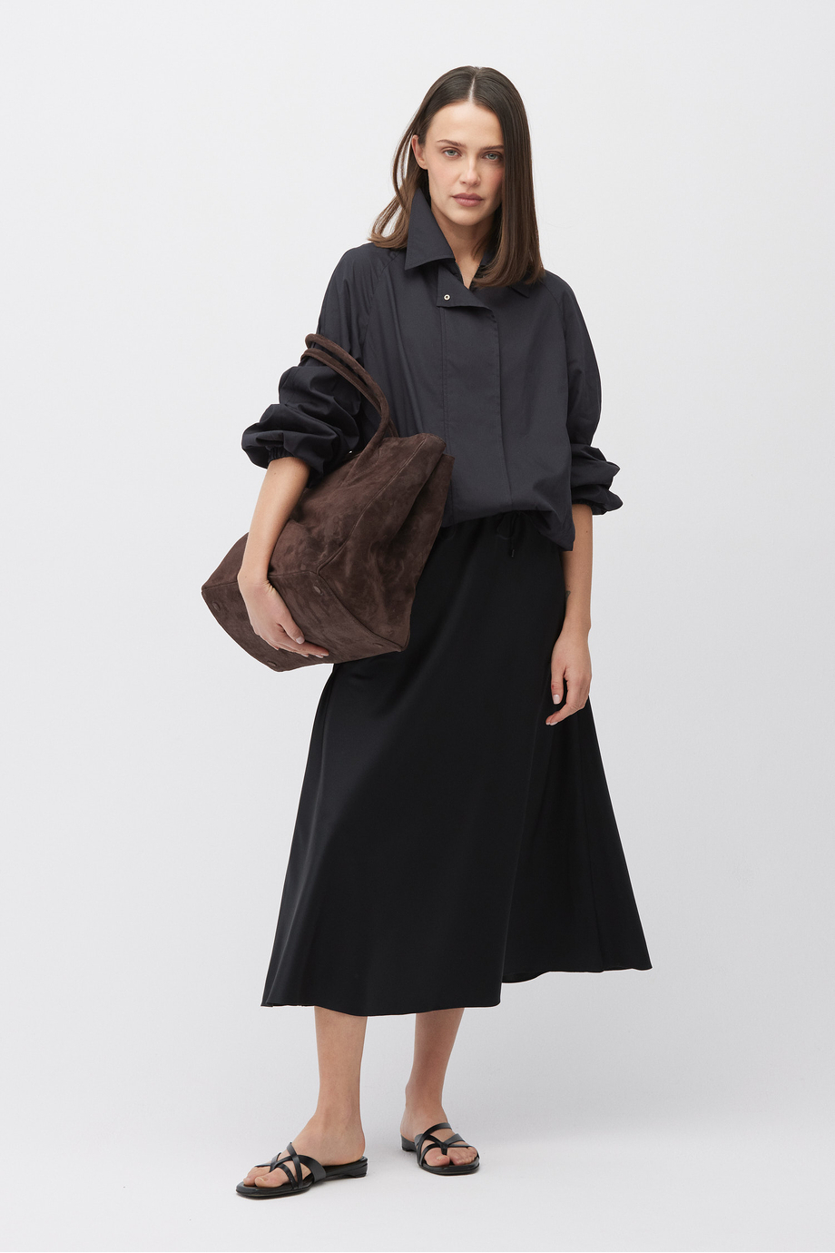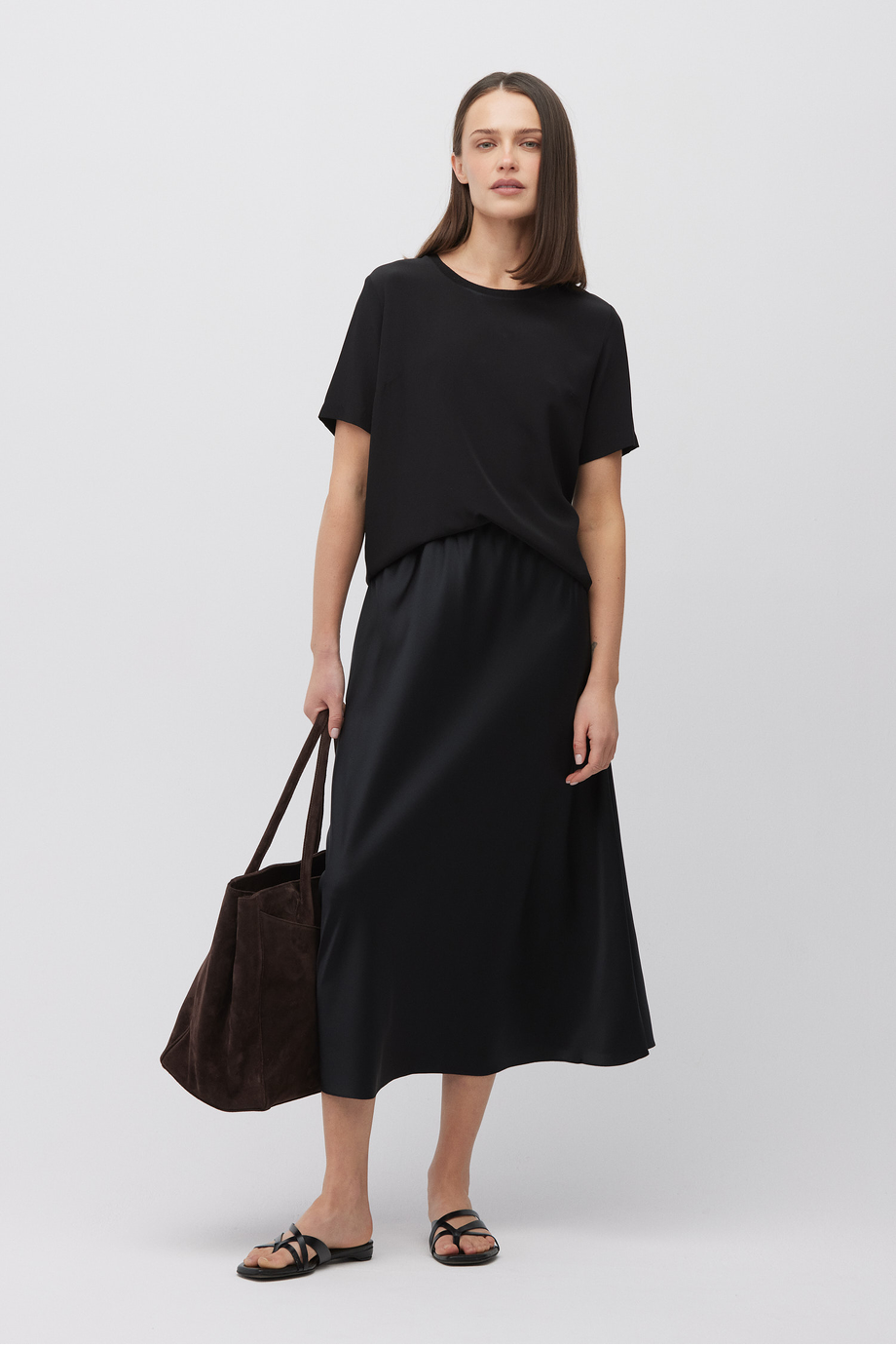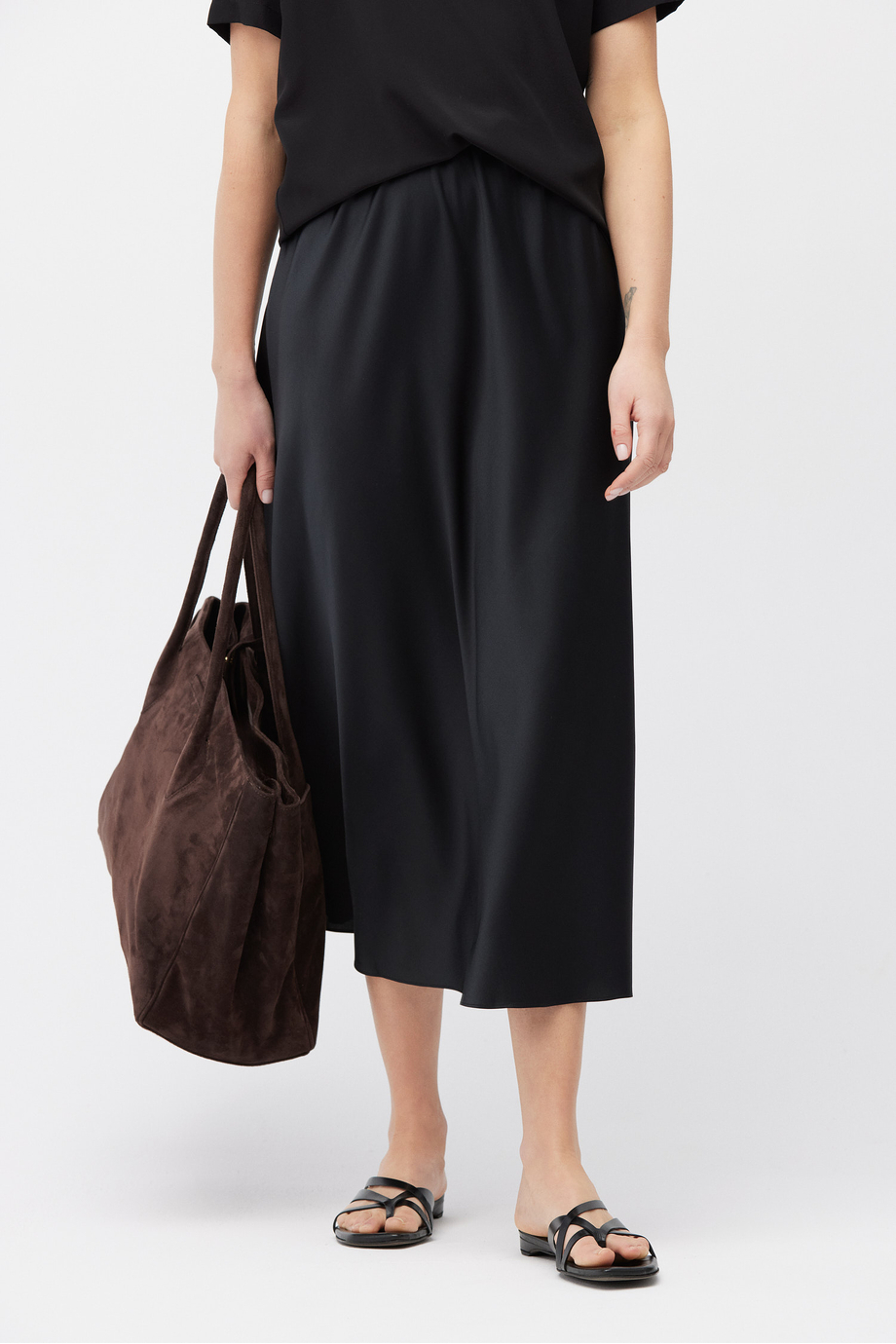 Czarna midi spódnica z jedwabiu