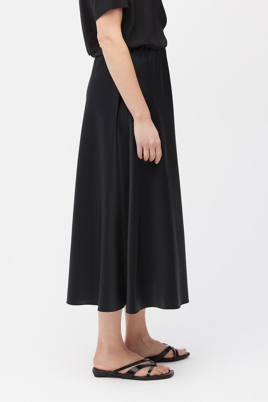 Czarna spódnica z jedwabiu. Elastyczna talia. Długość midi.