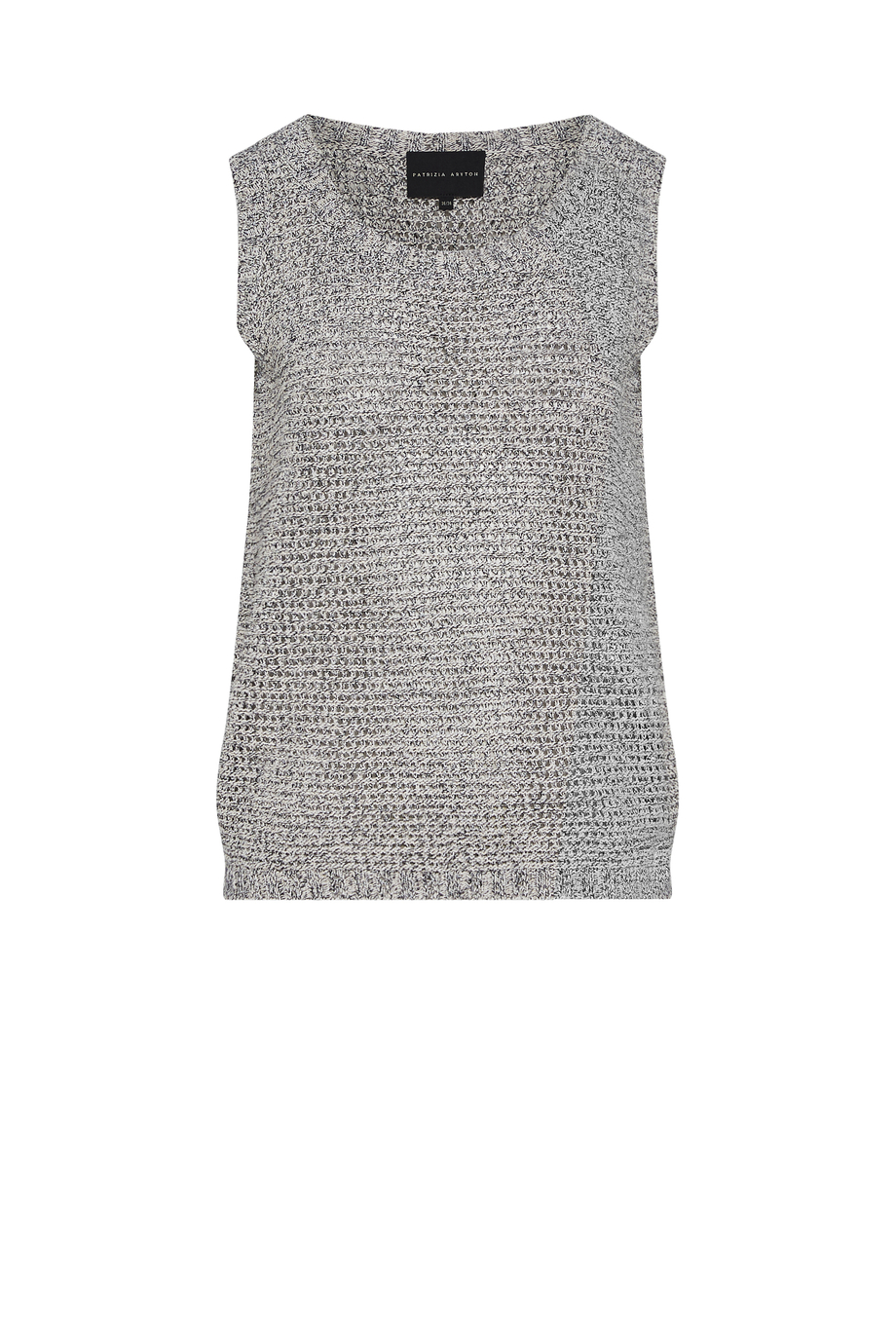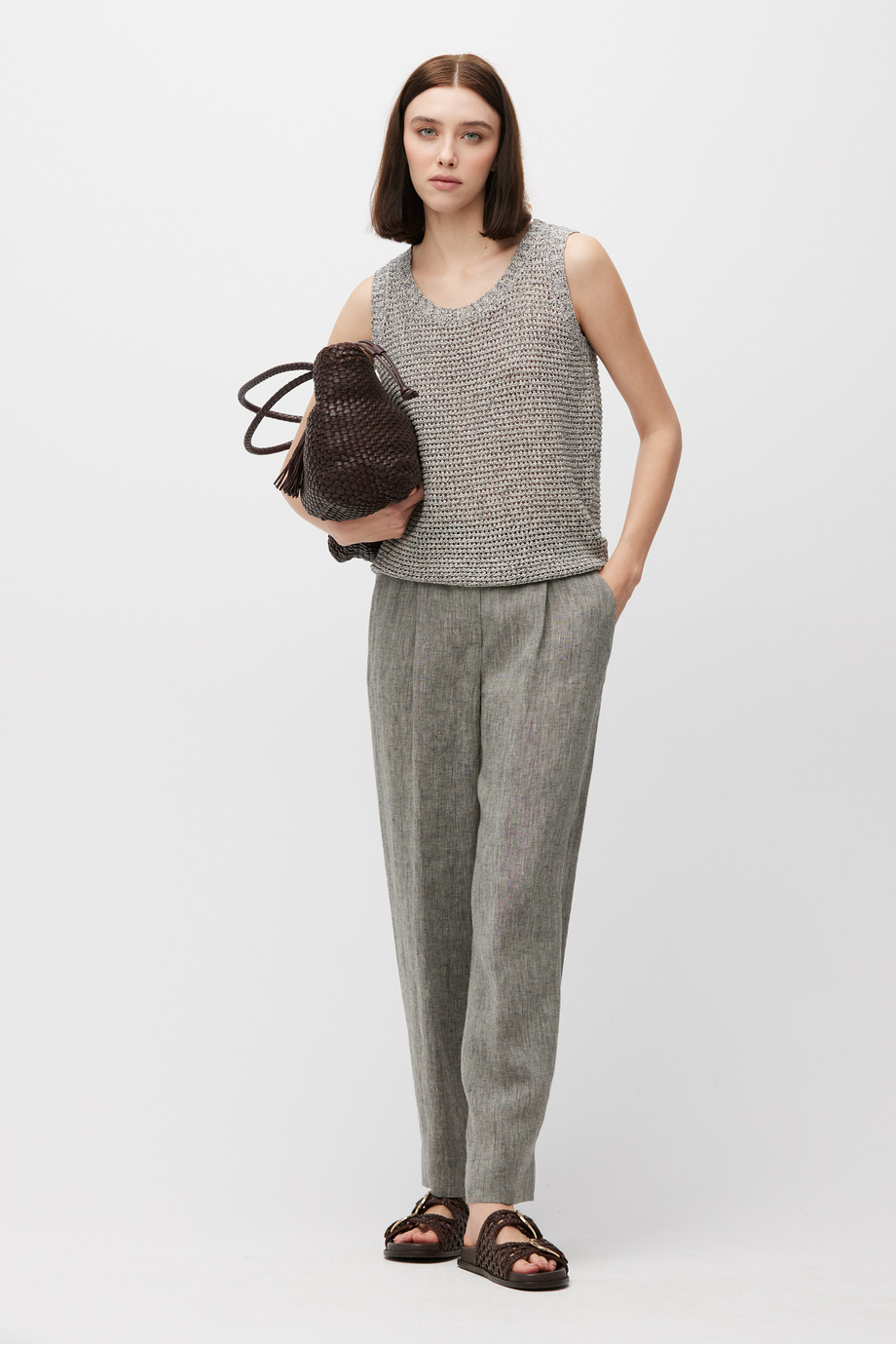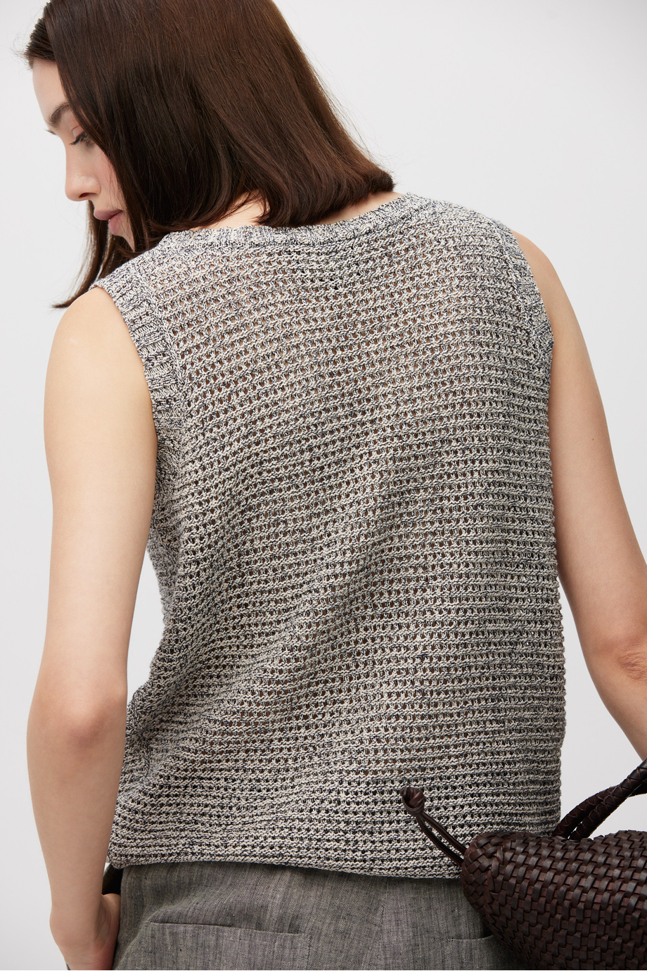 Top z mieszanki bawełny, lnu i lyocellu. Szerokie ramiączka, okrągły dekolt, fason swobodny. Dzianina o luźnym splocie. Kolor szary melanż.